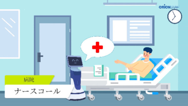 患者がワンボタンでロボットを呼び出す。配送ロボットが薬剤、水などを配送できるほか、検体を回収するなどに活用できる。二次開発で、遠隔医療にも対応できる。病院内の業務をロボットと分業することで医療関係者の働きやすさや病院の魅力度向上につながる。