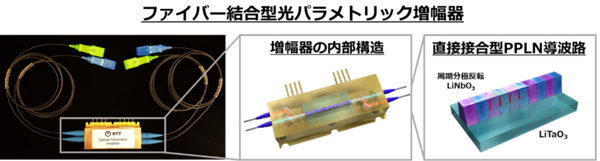 この技術では、光量子状態を光損失の影響を受けない「古典的な」レベルまで増幅することで、光通信テクノロジを光量子分野に適用可能としている。この実験では、NTTで長年研究開発を進めてきた高い増幅率(約3,000倍)と小さい信号対雑音指数(約20%)を有する、直接接合型周期分極反転ニオブ酸リチウム(PPLN)導波路による光パラメトリック増幅器を用いた。
