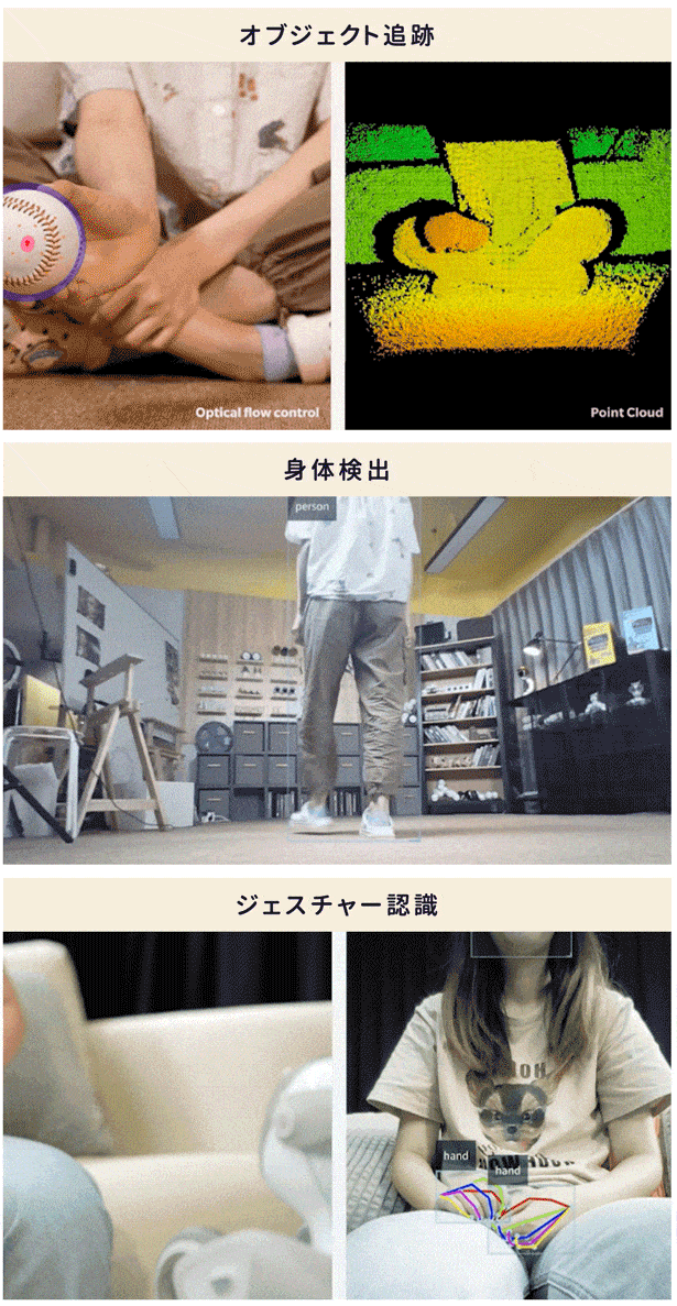 また、RGBカメラと統合し、動いている対象物を捉えて追跡することもできる。