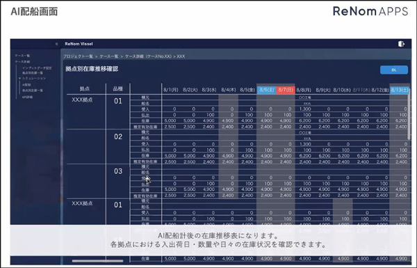 石油などの化学製品から日用品など国内における貨物輸送の配船計画をAIによって最適化。船舶の運航効率や製品の積み付けバランス、航海時間や荷役時間を含めた船舶稼働時間など様々な制約条件を考慮した最適な計画をAIが立案する。