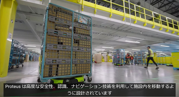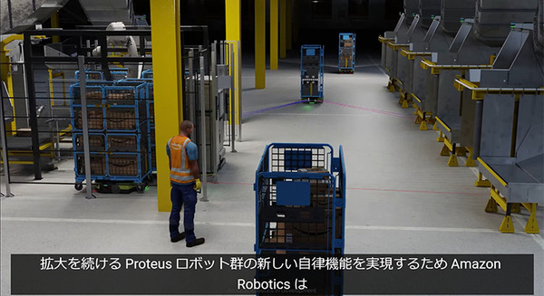 デジタルツインで設計、運用、棚や商品保管位置の変更などがデジタル空間で試されてから、リアル現場に実装される。これに新たに「プロテウス」ロボットが加わった。