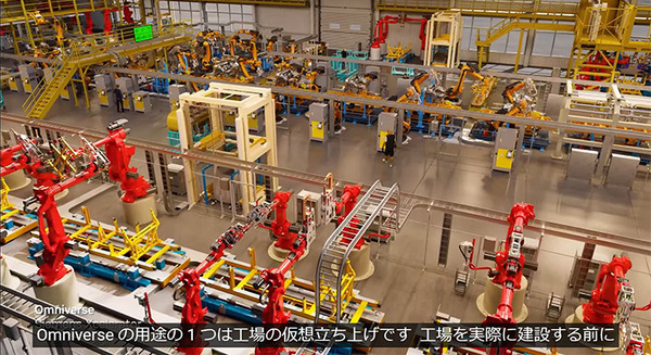 基調講演でジェンスンフアン氏は「Omniverseはデジタルとフィジカルを橋渡しするためのプラットフォームで、企業は製品や工場をデジタルで設計し、構築し、運用して最適化した上で、物理的な製品や工場に反映している」とデジタルツインの導入が進んでいて、効率化とスピード、コスト削減に多くの企業が成功していることを語った。