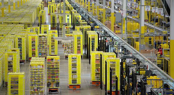 棚ごとロボットが入出荷スタッフの元に運んで来るシステムはAmazon Roboticsが最初に開発・導入したもの。