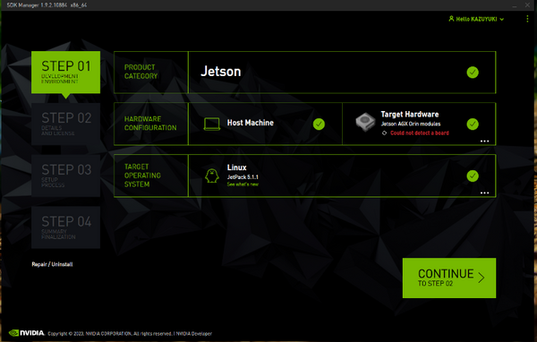 「SDK Manager」とは、Linux上でインストールホストPCからJetsonデバイスに対してOSイメージやSDKをインストールできるツールで、今回は最新版の「JetPack5.1.1」に対応したバージョンもリリースされましたのでそれを使います。