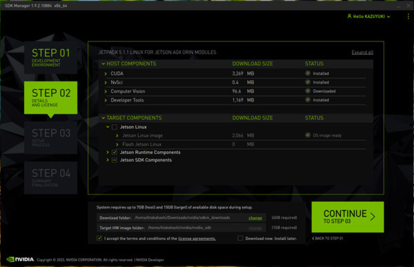 「NVIDIA Jetson AGX Orin開発者キット」の2回目のインストール、「Jetson Linux」部分はチェックを外している。
