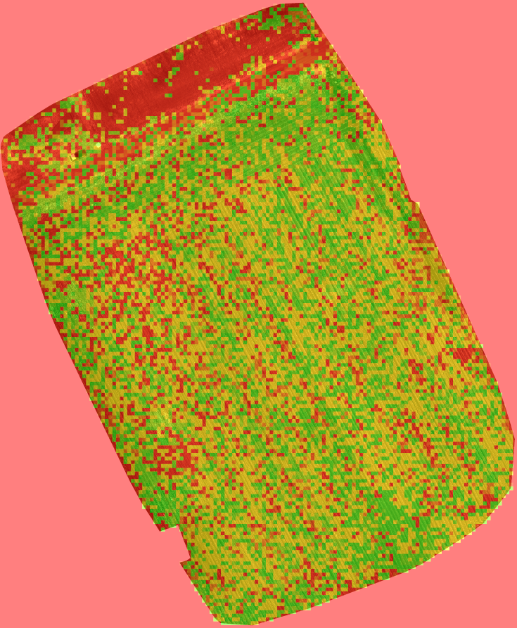 内容はドローンで連続撮影した大きなトウモロコシの圃場の画像をAIが解析し、苗の育成状態をヒートマップで見える化するというものです。