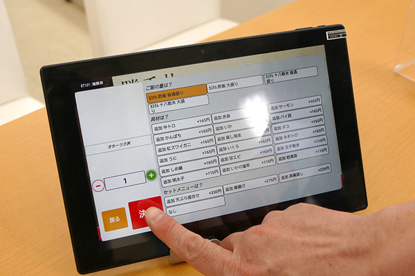 なお、システムの連動はタブレットと受付ロボットだけではない。タブレットからの注文は、厨房内のライス盛り付けロボットにネットワーク経由で飛び、自動で指定の容量の飯を盛ることができる。ライス盛り付けロボットには直接LANケーブルが刺さっている。