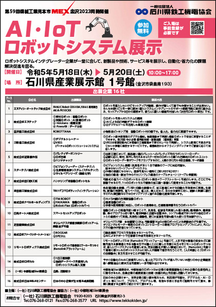■展示会名:MEX金沢2023併催イベント 令和5年度 てっこうきでんDXミーティング AI・IoTロボットシステム展