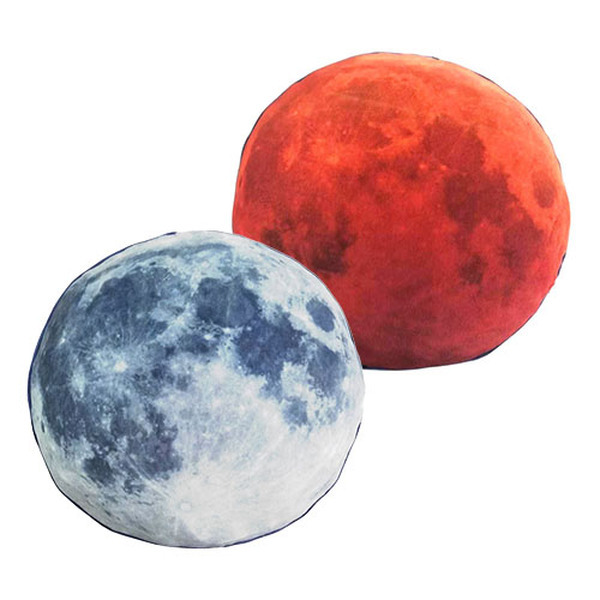『小学館の図鑑NEO』とコラボレーションした、月の形をしたクッション。表には満月、裏には皆既月食の月の様子が表現されている。(価格:2,750円(税込))