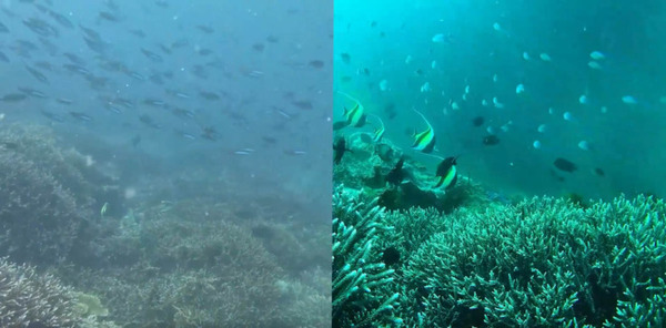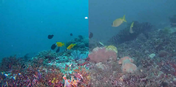 QYSEA独自のAI技術を駆使し、水中映像独特の青みがかった色合いを補正することができ、映像の彩度や明度を調整することでより鮮やかで美しい色合いを表現することが可能。