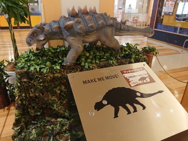 屋内展示では、ヴェロキラプトルの「大型恐竜ロボット」のほか、アンキロサウルスとティラノサウルス2種類の恐竜を操作パネルのボタンで動かせる「恐竜操縦ステーション」や、臨場感のある3種類の「恐竜のジオラマ」、ティラノサウルスの頭部と脚の「恐竜の化石(レプリカ)」を展示。梅雨時期でも天気を気にせず、楽しむことができる。