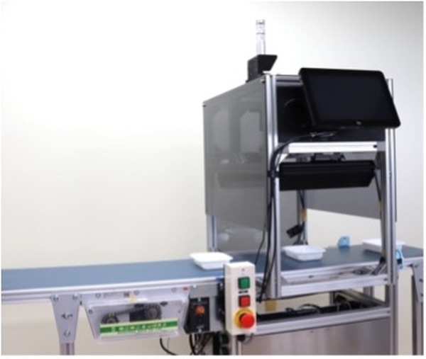 不定形の原材料・加工品、曲線の多い容器にも対応可能なAI検品システム。食に特化したAI機能・データセットによって、季節や品種によって状況が異なる食品製造工程での検査に対応。ラインで流れる位置や角度、生産品目が増えた際にも独自のアルゴリズムを組み合わせて活用ができる検査ソフトウェアとなっている。今回は容器への惣菜の乗り上げ検査を実演する。