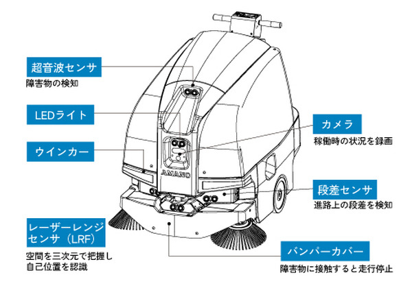 また、清掃ロボットクラウドサービス「AMANO Robot Cloud」により、ロボットの運行状況や稼働状況のパソコンやタブレットでの閲覧、及び、クラウド上で清掃ルートの変更も行えるため、現場管理者の大幅な工数削減に繋がる。