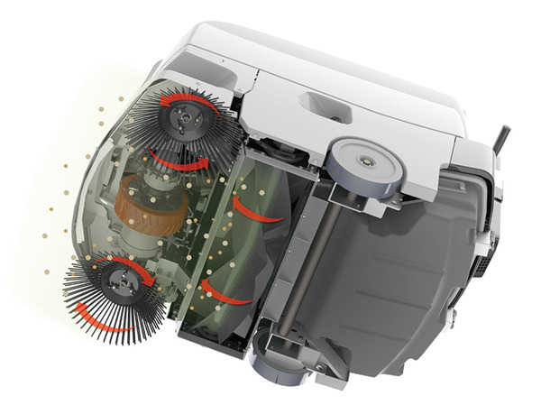 清掃幅は、925㎜と業界では最大級で、清掃能力2,775㎡/Hを実現した。バケット容量も30L(有効容量20L)と大きく、大型施設の除塵に導入効果の高い製品となっている。