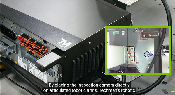 TechmanのロボットAOIソリューションの独自の機能には、多関節ロボットアームに検査カメラを直接配置することや、ロボットコントローラーに統合されたGPUが含まれており、これにより、ロボットは固定カメラではアクセスできない製品の領域を検査したり、エッジでAIを使用して欠陥を即座に検出したりすることができる。