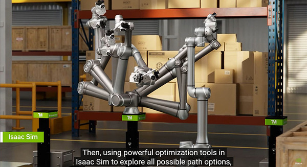 Quantaの子会社、Techman Robotは、NVIDIA Omniverse上に構築されたロボットシミュレーションアプリケーションNVIDIA Isaac Simによってロボット用のカスタムデジタルツインアプリケーションを開発。Quantaの製造ラインの検査を改善している。