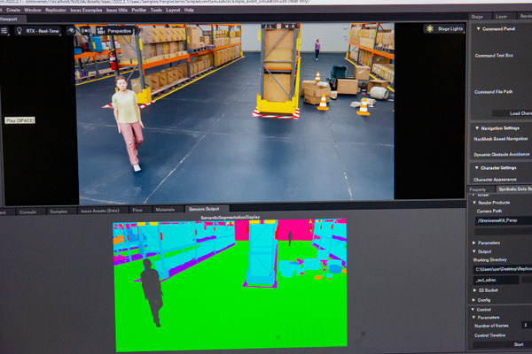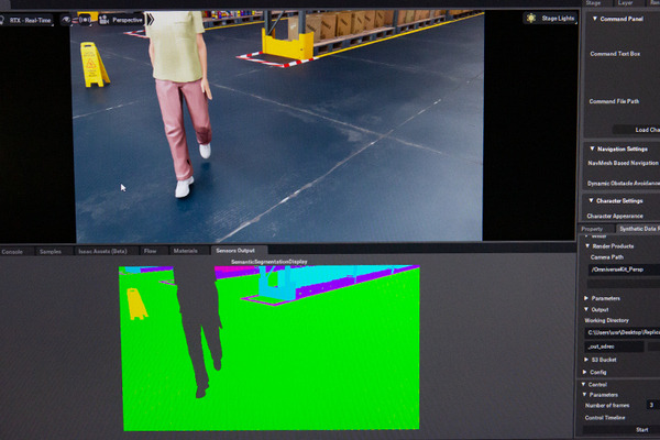 また、動いている人を避けたり、停止するシミュレーションを手軽に行えるようになっている。また、AIに人を認識させるためなど、AIに学習させるための合成データを自動で生成できる仕組みも備えている。
