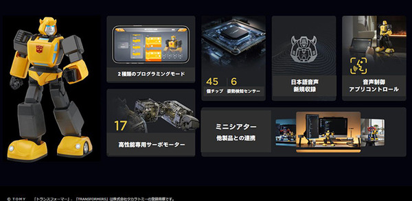 二足歩行に対応し、音声コマンドやアプリで操作するできる。歩行スピードを調整したり、難易度の高いアクションをしたり、倒れても自動的に立ち上がったりも可能。オプティマスプライムと連携しながら、ミニシアターで劇中のシーンを演出する機能も搭載されているという。