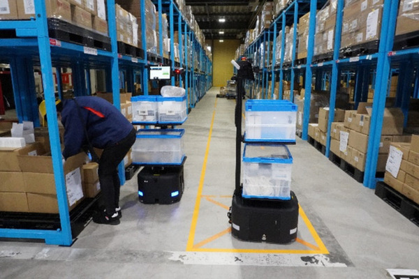 このような状況のもと、ラピュタロボティクスの協働型自律走行運送ロボット「ラピュタPA-AMR」は汎用性と柔軟性が高く、3PLの事業特性にマッチし、また、AMR導入に際して既存のレイアウト変更も必要ない点が評価された。