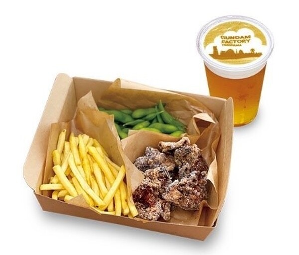 7月1日(土)より、施設内2Fの「GUNDAM Café YOKOHAMA Satellite」では、泡にオリジナルデザイン(全3種)を施したビールやおつまみセットを提供する。