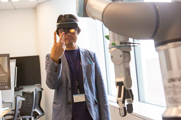 ロボットの導入を提案する側、代理店やSIerにとっては、提案時に実物のロボットを現場に持ち込む必要がなく、「HoloLens 2」1台だけで、現場の設置や動作のイメージ検証を行えるので効率的だ。また、導入を検討している顧客も実際に3DのMR上で現場にロボットを配置することで、具体的な導入イメージを体感することができる。
