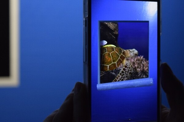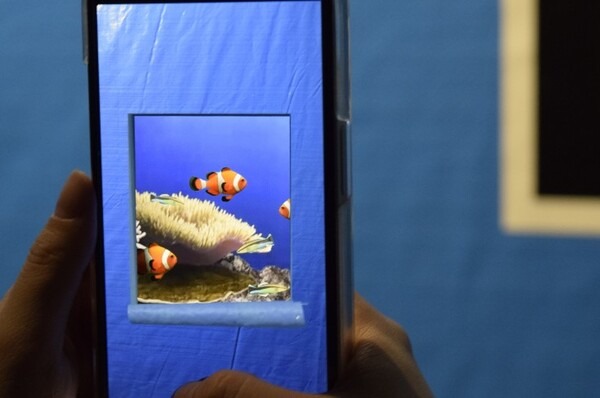 リニューアル工事中のブルーシートの中がスマホをかざすと覗けちゃうよ!グレートバリアリーフをAR技術でチラ見 海遊館