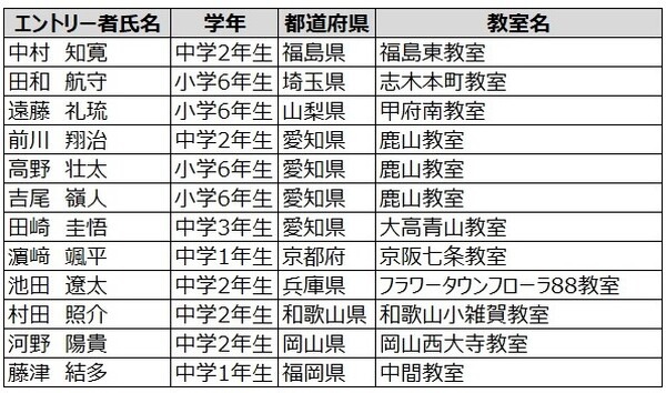 テクニカルコンテスト部門 出場者一覧
