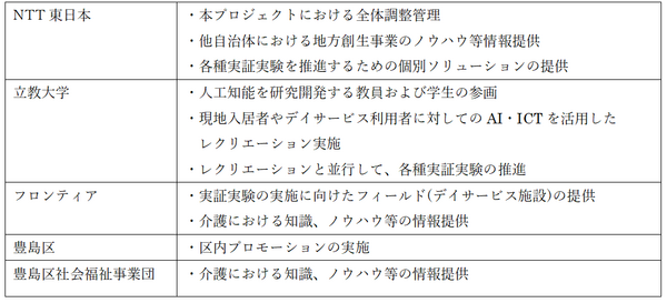 NTT東日本、立教大学、フロンティア、豊島区、豊島区社会福祉事業団の5者は、産学官共同で2019年より介護AIプロジェクトを始動させ、分析、検討を進めてきたが、こうした現状を踏まえ、主にデイサービス利用者の方々へ、AIやICT(ロボットやVR)を活用した新規レクリエーションを提供する共同実証を開始することとなった。