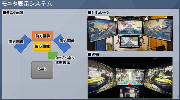 操縦はジョイスティック2基、ペダル2基で行い、その他、モードチェンジ等をおこなうタッチパネルも装備されている。