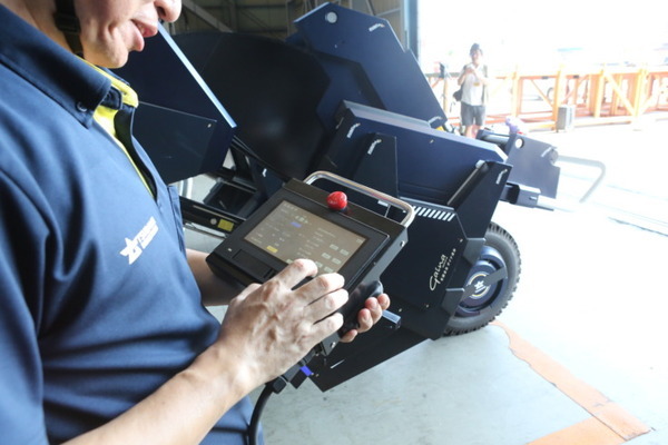 また、搭乗操縦のほかに、産業用ロボット向けティーチングペンダント形状のコントローラで遠隔操作(操作には一部制限がある)も可能となっている。