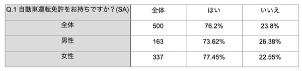 | 調査タイトル | 自動車運転免許やクルマに関するアンケート調査 |