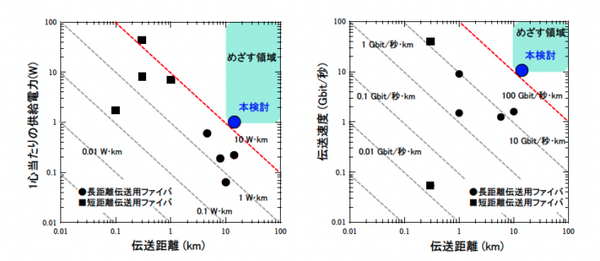 光給電能力は伝送距離と供給電力の積で表すことができる。今回の検討ではMCFの適用で単位断面積当りの供給電力を最大化し、光給電効率の劣化要因となるシステム内の戻り光を抑制することで、MCFを14km伝送後に約1Wの電力を得ることができた。これにより光給電能力は14W・km で、これは世界トップの性能指数となっている。