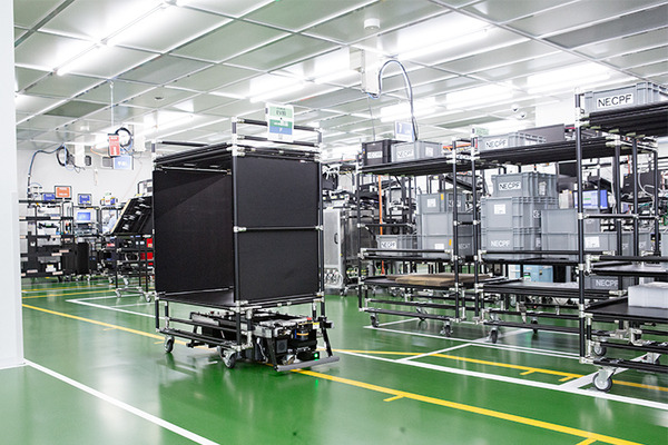 NECプラットフォームズは、静岡県掛川市の掛川事業所内に新しくスマート工場を新設し、8月から本格稼働を開始した。そこでは最新のICT技術として自律走行搬送ロボット(AMR)、無人搬送車(AGV)を複数台導入し、それを統合制御するプラットフォームを導入した。通信にはローカル5Gを活用している。これにより製造工程を自働化と高度化を図り、掛川事業所全体で生産効率の30%向上を見込む。