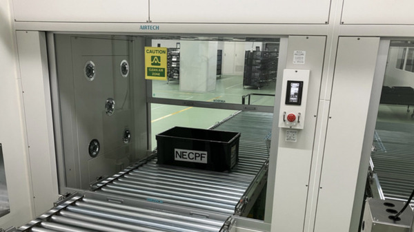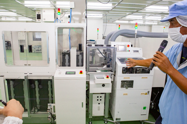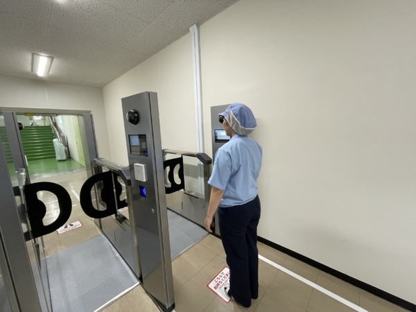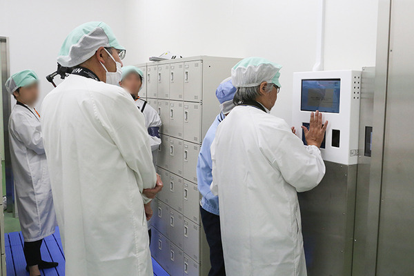 また、生産ネットワークの細分化(セグメンテーション)とUTM機能(総合脅威管理:Unified Threat Management)などを搭載したセキュリティ機器の導入により、サイバーセキュリティリスクの軽減を図っている。また、室内の浮遊微粒子である塵・ホコリや浮遊微生物の発生を抑え、製造フロアのクリーン度を向上するための除塵エアシャワーを受けて入室した。