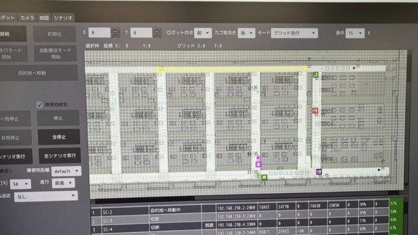 動き回るAMRの運用にあたり、走行・運行を管理しているのがNECの自律移動ロボット管制制御ソフトウェア「NECマルチロボットコントローラ(MRC)」だ。