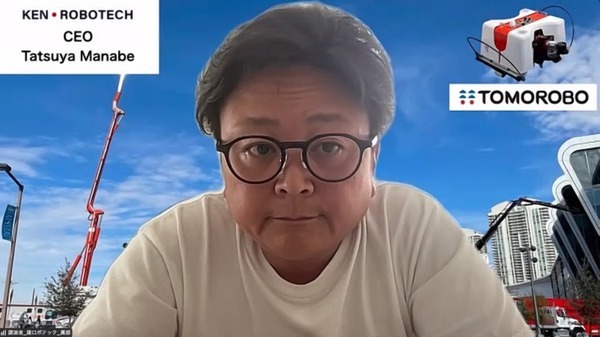 3番目に、建ロボテック株式会社 代表取締役社長兼CEOの眞部達也氏が講演した。建ロボテックは香川県に拠点を置き、鉄筋結束ロボットや搬送ロボットを開発している。眞部氏自身もかつて鉄筋職人で、現場ニーズを実感として把握しているキャリアの持ち主だ。ロボット開発はあくまで建設現場向けに「現場省力化ソリューション」として行っている。建築技術は世界共通だが、同社は積極的に海外展開を行っている点も特徴の一つとなっている。