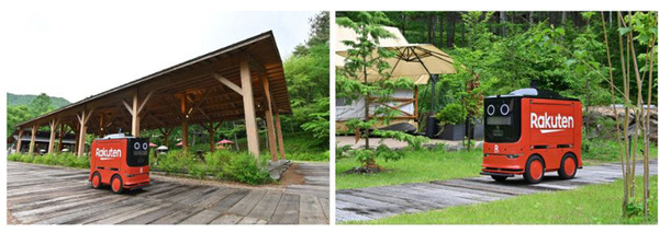 その後、2020年8月から9月にかけて、東急リゾートタウン蓼科のグランピング施設で、楽天の専用アプリで注文を受けて、BBQの食材、デザート、朝食等をキッチンからヴィラの宿泊者の方へ自動配送ロボットで配送しました。