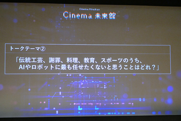 大幅に技術の進んでいる『AIの遺電子』の世界では、様々な分野でAIやロボットが活用されている設定だ。トークテーマ2は「伝統工芸、謝罪、料理、教育、スポーツのうち、AIやロボットに任せたくないと思うことはどれ?」というもの。アニメでも鍛冶屋に弟子入りするロボットや、ヒューマノイドのかわりに謝罪する人間の話などがあった。