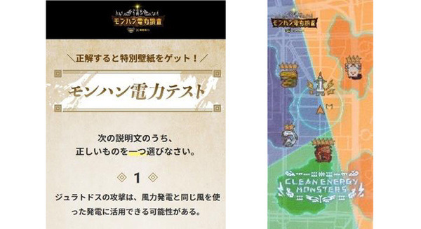 さらに、モンスターの攻撃が生み出す発電量の調査結果や電力にまつわる「モンハン電力テスト」の正解者には、特別壁紙がプレゼントされる。