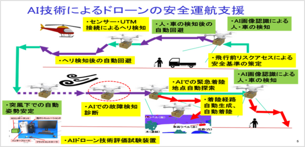 また、国立研究開発法人新エネルギー・産業技術総合開発機(NEDO)の世代空モビリティの社会実装に向けた実現プロジェクト「Realization of Advanced Air Mobility Project:ReAMoプロジェクト」において、イームズロボティクスで実施している1対多運航、リモート技術、AI技術を取り入れ運用コストの大幅に削減できる物流ビジネスモデルを構築し、周辺システム・ソフトウェアを搭載した商品開発を進める。