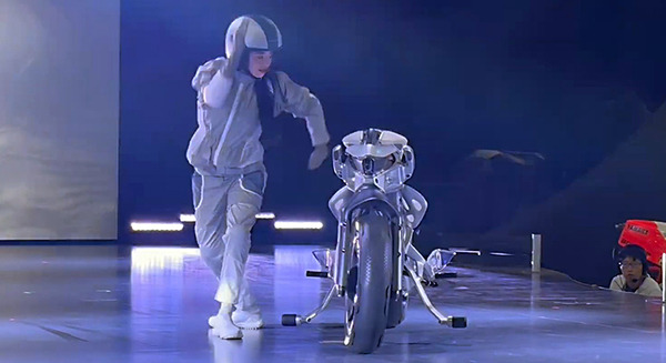 自らをセンシングして不倒状態を保つバランス制御「AMCES」や、オーナーの意思をくみ取りながら状態を判断する「画像認識AI」の深化、さらにこれまでの二輪車には存在しなかった新たなストラクチャー“LEAF”を身にまとうなど、人とマシンの呼応に特化したスタイリングを主な特徴としている。