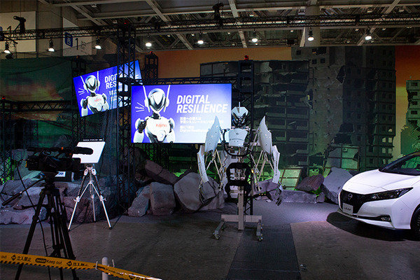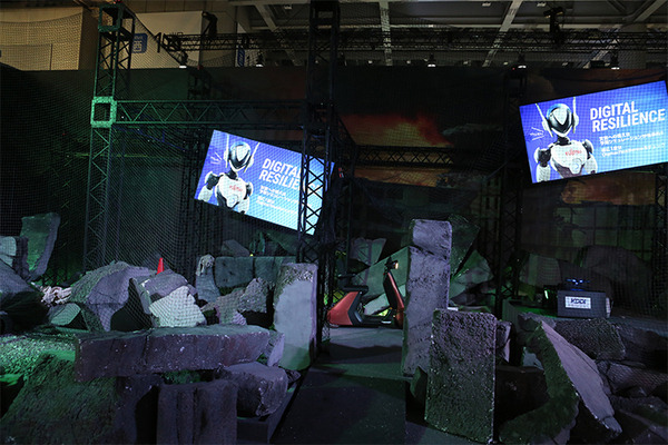 「EMERGENCY & MOBILITY」エリアはゴジラが出現して破壊された街から、ロボットやドローン、通信を使って救助する演劇ドラマが転回する体験型コンテンツが用意されている。