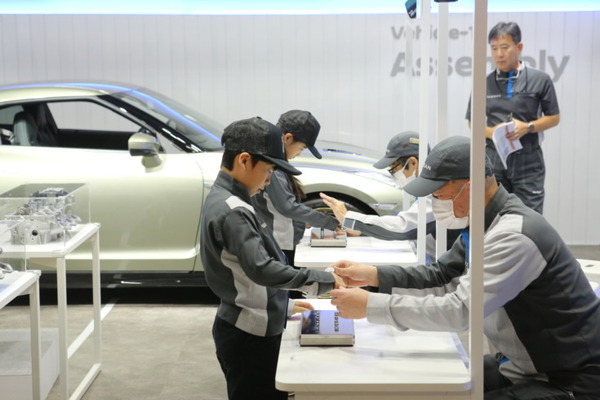 南棟には「Out of KidZania in JMS 2023」が用意されている(有料)。既に予約は開始されている。各自動車メーカーがブースを構え、カーモデラーやメカニックなど、ここでしか体験することができないモビリティに関わる多彩な11種類のプログラム(職業体験)を小学生向けに提供する。