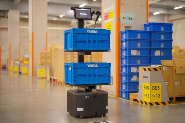 安田倉庫厚木営業所では、ラピュタロボティクが提供する「ラピュタPA-AMR」の導入により、ピッキング作業における搬送工程の自動化と、歩行時間の削減や「手ぶらピッキング」による作業スタッフの身体的負担の軽減を実現している。