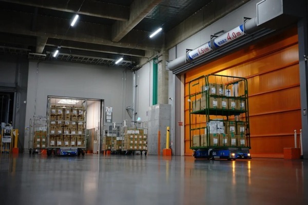 安田倉庫東雲営業所(東京メディカルロジスティクスセンター)では、立山マシンが提供する低床型自律走行搬送ロボットの導入により、重量500kgを超えるカゴ台車の搬送作業の自動化による生産性向上と身体的負担の軽減を実現。また、ロボット単体の活用のみならず、RFIDソリューションを合わせて活用することより、トラックヤードへの納品方面別の自動仕分け搬送作業を実現している。