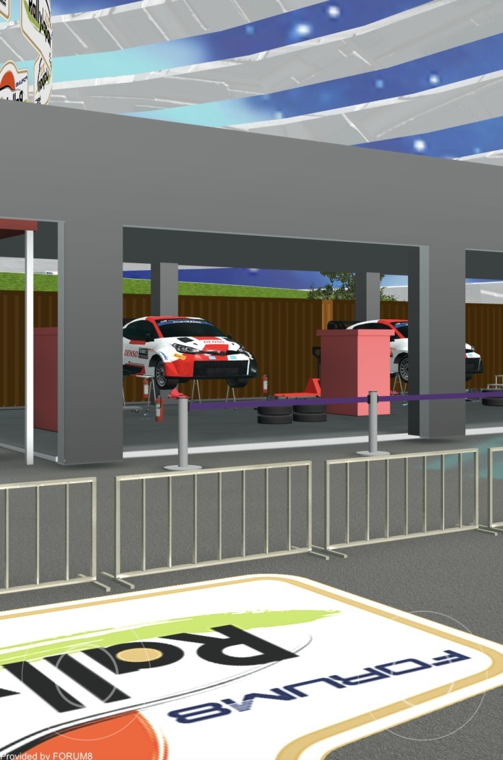 フォーラムエイトから豊田スタジアムのメタバース空間が提供されている。豊田スタジアムの中の特設競技コースやラリーカーをメンテナンスするサービスパーク、自治体のブースなどがメタバース空間で体感することができる。