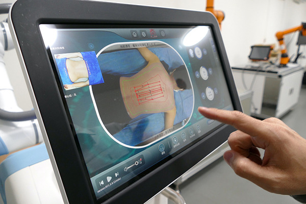 マッサージロボットは、マッサージ用の手持ち機器をロボットのエンドエフェクタとして使ったものだ。いわば、溶接ロボットなどと同じである。せっかくなので筆者もマッサージしてもらった。マッサージのためには上半身を脱ぐ必要がある。機械が背中を認識すると、その上にロボットが動く経路が自動生成される。必要に応じてタッチパネルを使って、手直しすることも可能だ。あとはオンにすればいい。マッサージ中は本体から楽しげな音楽が流される。