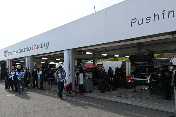シェイクダウンから戻ったラリーカーは、整備やメンテナンス受けるために「サービスパーク」に戻ってくる。そこでも多くの観客が詰めかけ、ドライバーと会ったり、サービスパークのメンテナンス風景を見ることができる(専用のチケットが必要)。