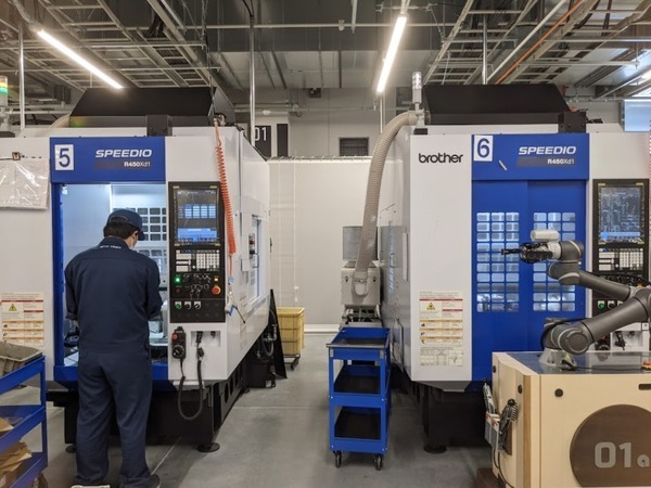 複数の機械とロボットの状態を中央システムで管理し、生産状況に応じたロボットの適時移動と作業を実現。
