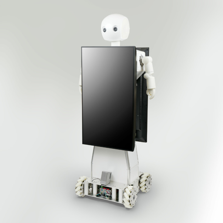 本体を走行させる車輪部分には「メカナムローバーG120A」を、上半身に搭載された頭や腕などのコミュニケーションロボット部分には「Robovie-R4」の部品を活用しており、ゼロから開発・製造する場合と比較し、より迅速で安価な試作プロジェクトとして実施している。